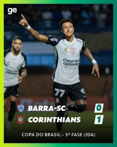 Próximo adversário do Vasco no Brasileiro, Corinthians vence o Barra-SC por 1 a 0 pela Copa do Brasil 22/04/2026