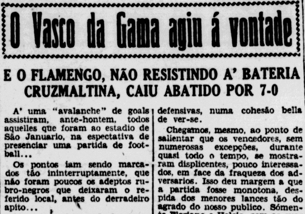 As derrotas do Flamengo para o Vasco estavam se tornando tão frequentes (de 1928 a 1931, o time cruzmaltino venceu todos os seus 8 jogos oficiais contra os rubro-negros) que a goleada histórica recebeu, nos jornais da época, um destaque que hoje seria considerado modesto.