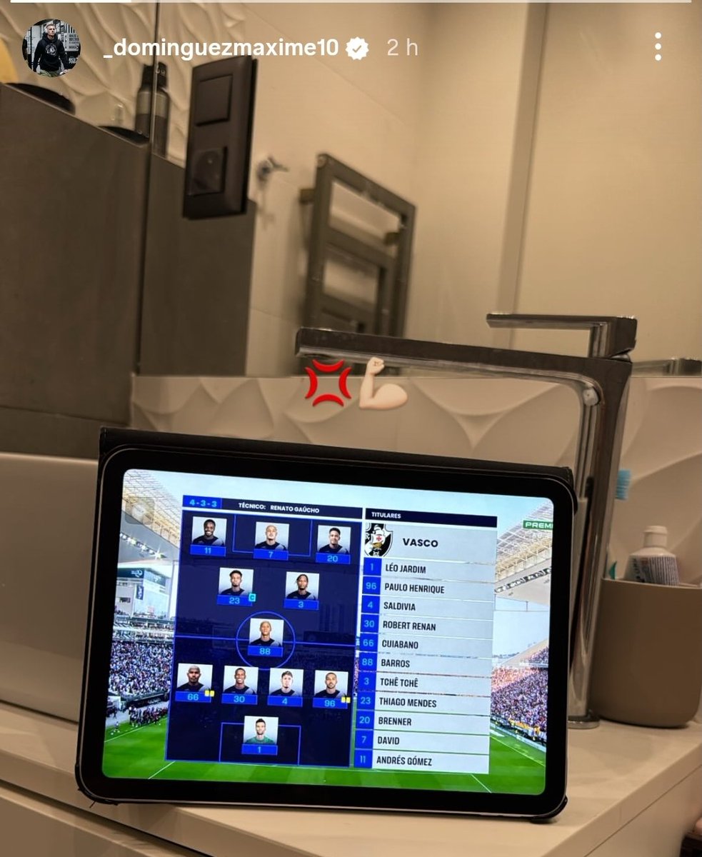 Maxime Dominguez posta foto assistindo ao jogo do Vasco; veja