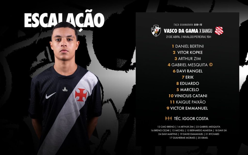 Vasco Base @vascobase 📋 Sub-15 escalado para enfrentar o Bangu pela Taça Guanabara!