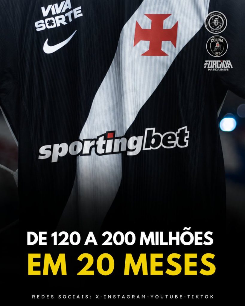 – Em 2026, o Vasco receberá 50 milhões podendo chegar a 100 com metas batidas;