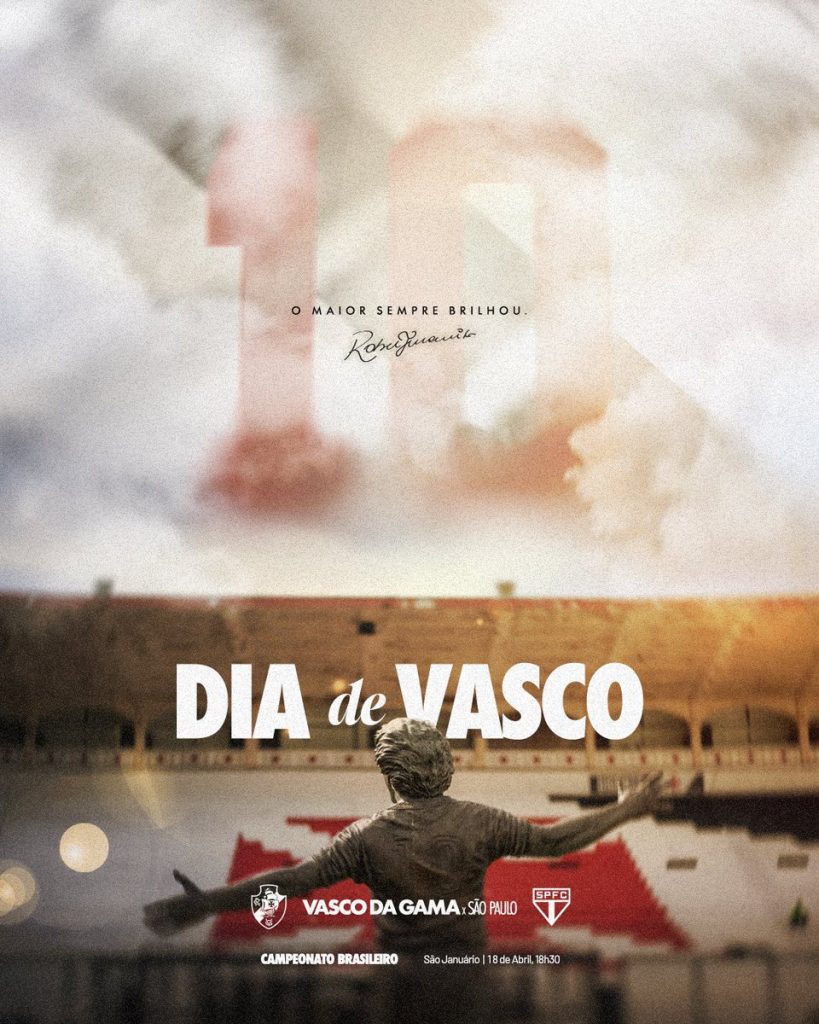 Vasco exalta Roberto Dinamite na arte de divulgação do jogo contra o São Paulo