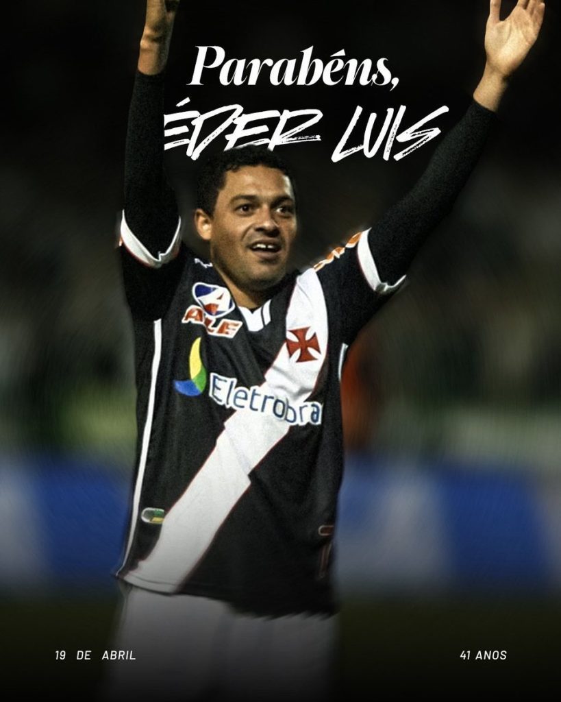 Vasco parabeniza Éder Luís, que completa 41 anos neste domingo